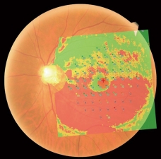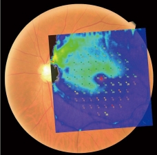 可通過將OCT的各種形態(tài)學(xué)檢查影像與NIDEK微視野視野計(jì)MP-3采集的視功能檢查數(shù)據(jù)疊加成各種功能性多模影像。