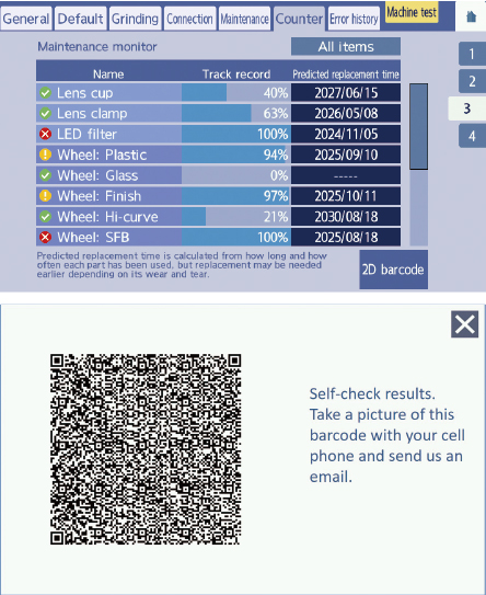 自檢功能在出現故障時自動診斷所選組件。檢測結果以二維碼形式顯示,可發送給授權經銷商以獲取快速服務支持。
