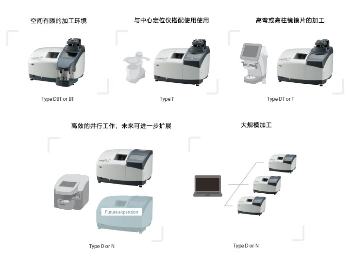 集成式子軸單元不僅能進行鉆孔,還能使用專用磨輪對各種材質的鏡片進行高質量的倒角和開槽。